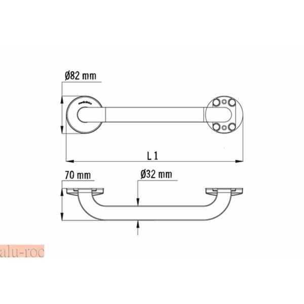 - Barra de sujeción para bañeras y duchas, para la instalación vertical, horizontal o inclinada.